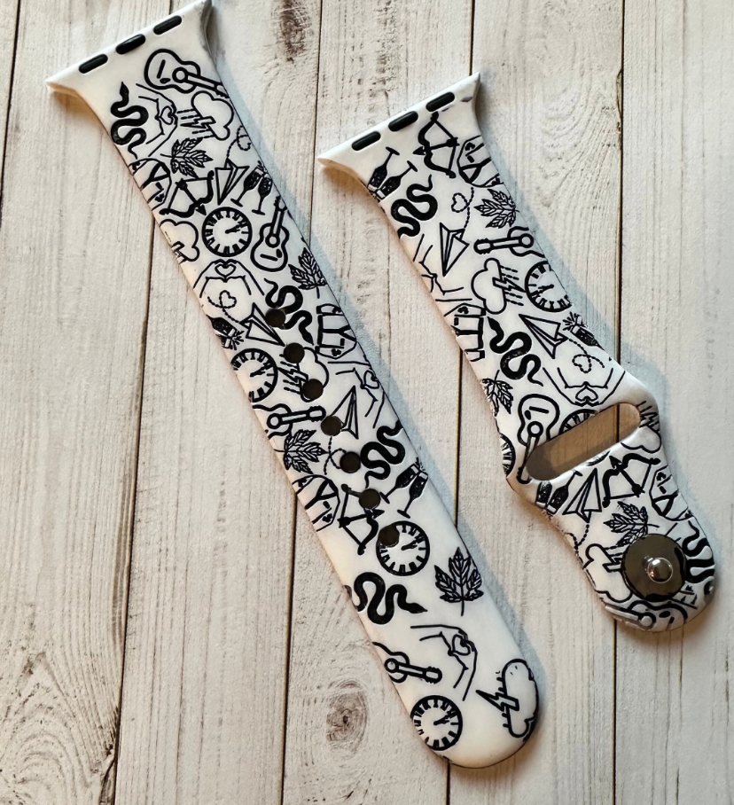 This listing is for an APPLE WATCH BAND. They are made of silicone and the design is engraved.